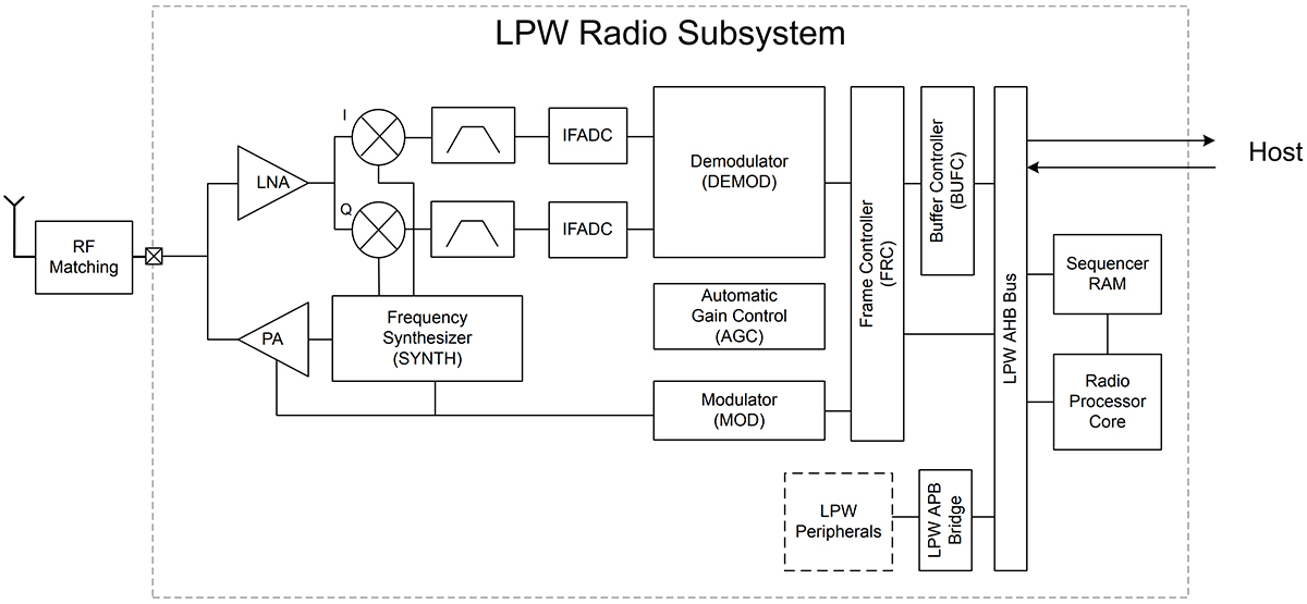 Moderne IoT-Anwendungen sind auf eine robuste Vernetzung angewiesen, und die SixG301-Familie ist so konzipiert, dass sie selbst in den dichten, störungsanfälligen Umgebungen, die für diese Anwendungen typisch sind, zuverlässig funktioniert. Das LPW-Funkelement (LPW: Low-Power-Wireless) der Familie (Abbildung 3) integriert einen Funkprozessorkern, RAM sowie dedizierte Sende- und Empfangssignalpfade und stellt damit ein komplettes Netzwerksubsystem dar.