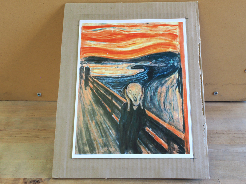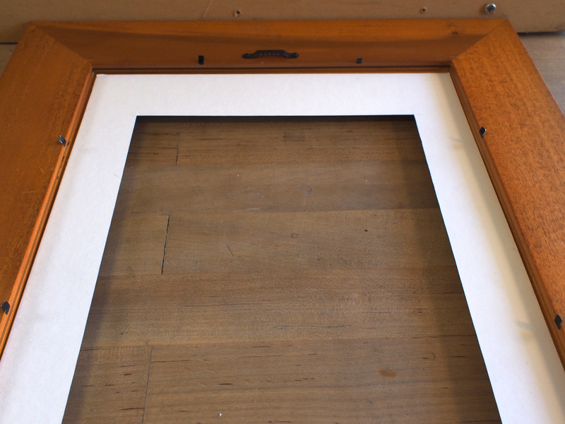 - Center the print on the cardboard backing that came with the frame, then affix it with a strip of tape at the top (the mat will hide this)