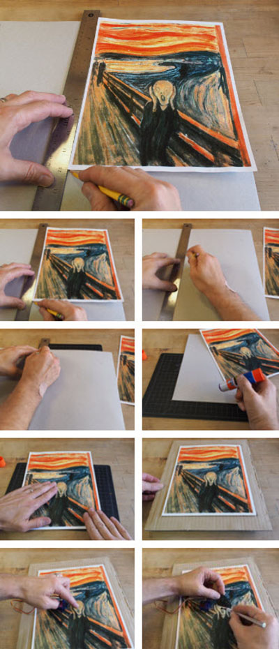 - Measure and mark the print's dimensions onto a piece of thin cardboard, a.k.a. chipboard, using a straight edge and pencil