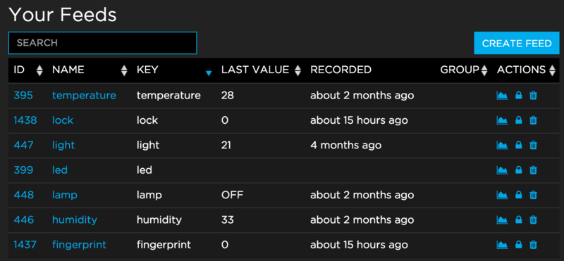 Then, we also define a feed specific for the fingerprint sensor. It will simply contain '1' if the sensor has just been activated with a valid fingerprint: