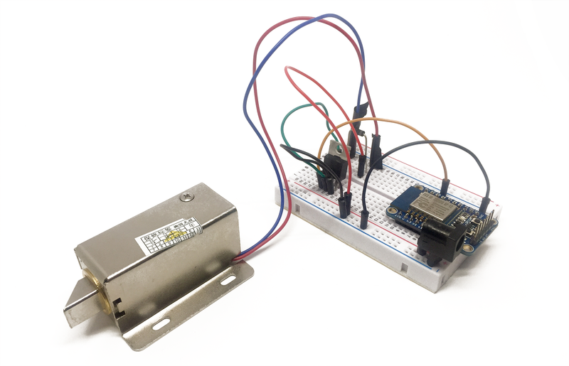 We are now going to set up the part of the project that will actually control the door lock. We'll use the Adafruit ESP8266 breakout board here, as that's just what we need to connect to the WiFi network and activate/deactivate the lock. It will also illustrate how simple it is to make two different platforms (Arduino & the ESP8266) communicate with each other using Adafruit IO.