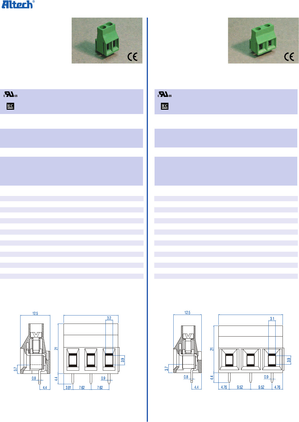Printed Circuit Board Terminal Blocks(Printed) Datasheet by Altech Corporation